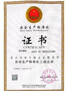 安全生產(chǎn)標(biāo)準(zhǔn)化三級(jí)企業(yè) 證書 -