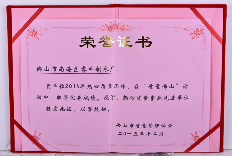 熱心質(zhì)量事業(yè)先進(jìn)單位 -