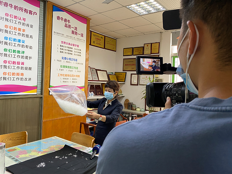 媒體記者參觀了我廠車間、沖絨房,并采訪了睿??偨?jīng)理--歐陽月華女士。