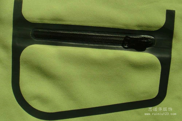 有著20年沖鋒衣加工經(jīng)驗的思諾華服飾,在生產(chǎn)中也引進了相關(guān)的鐳射機、壓膠機等設(shè)備嵌入此工藝。下面簡略了解一下鐳射無縫壓膠技術(shù),“無縫壓膠口袋”制作原理。
