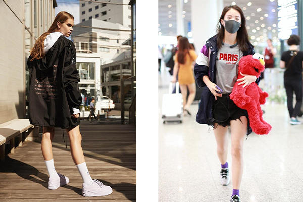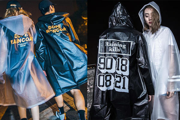 這是滿常見的一款,但同時也是最具風格性的。在普通的穿搭,只要套上透明雨衣式的沖鋒衣,都可以化腐朽為神奇!利用內(nèi)搭上衣來避免撞衣的窘境,如圖左整套式的透明搭配,以頭跟腳的黑色配件來強化對比;圖右則是在亮橘色的衛(wèi)衣外,罩上透明黑邊的沖鋒衣,點亮了原本較單調(diào)的穿搭;圖中的下身選擇簡單的五分短褲,加以凸顯上半身的半透明沖鋒衣之特色。