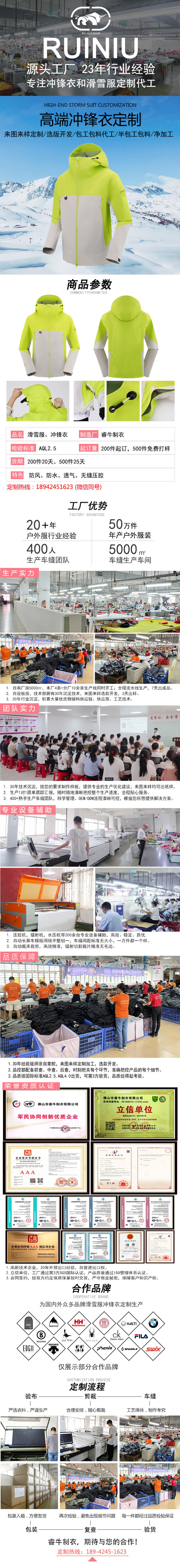 優(yōu)質(zhì)面料:專業(yè)高端沖鋒衣定制23年沉淀優(yōu)質(zhì)供應(yīng)商資源,可根據(jù)客戶需求精選優(yōu)質(zhì)面料。