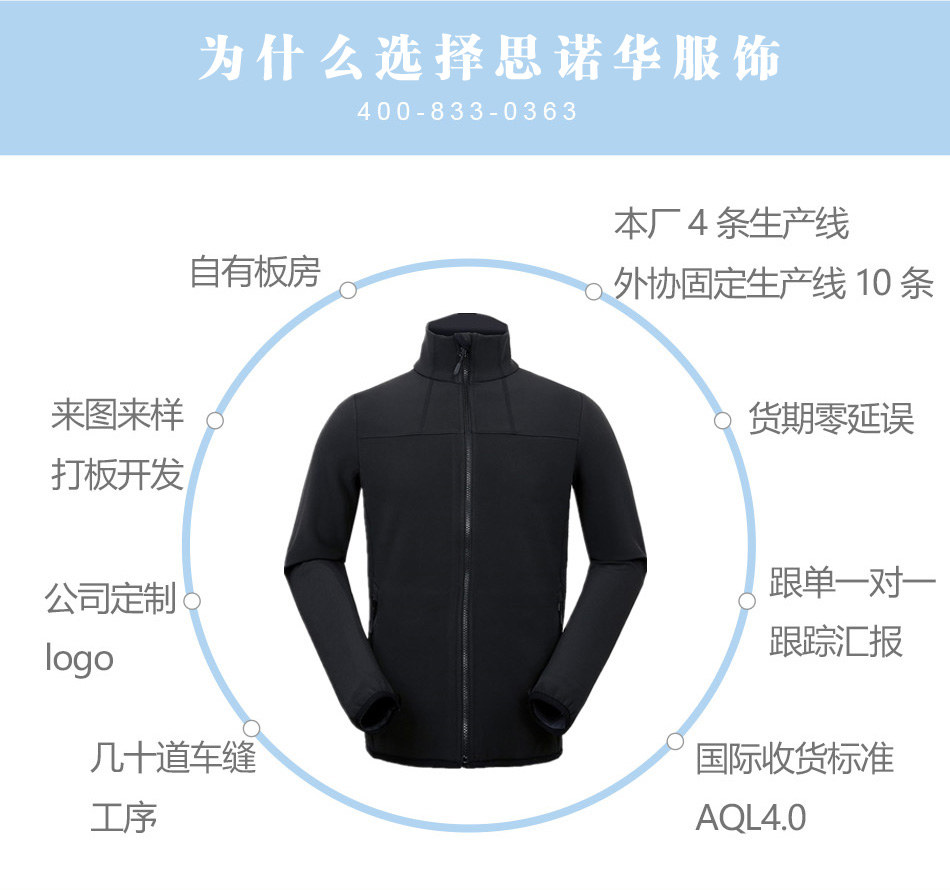 防風(fēng)透氣軟殼型沖鋒衣定制—思諾華服飾