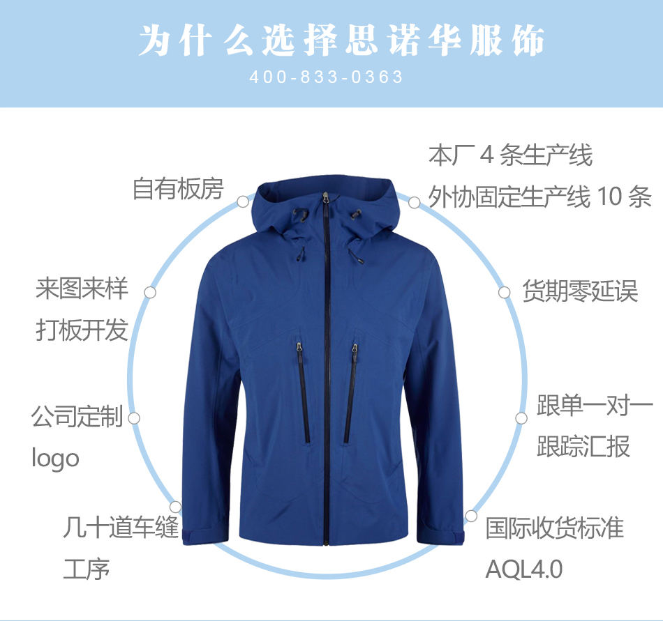 防水拉鏈:防水滑雪服定制高質(zhì)量YKK防水拉鏈,可承受數(shù)萬次拉合,可根據(jù)客戶要求特殊定制。